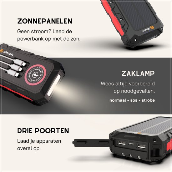 De JIR Tech® Solar Powerbank biedt een breed scala aan functies die het tot een veelzijdige keuze maken: